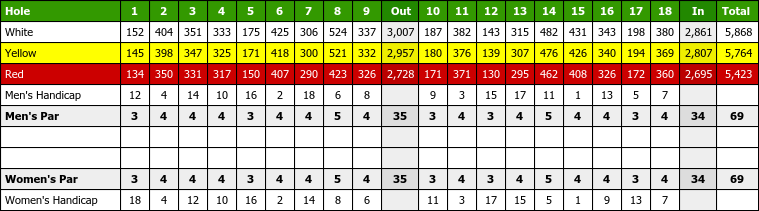 Scorecard The Legends Golf Club